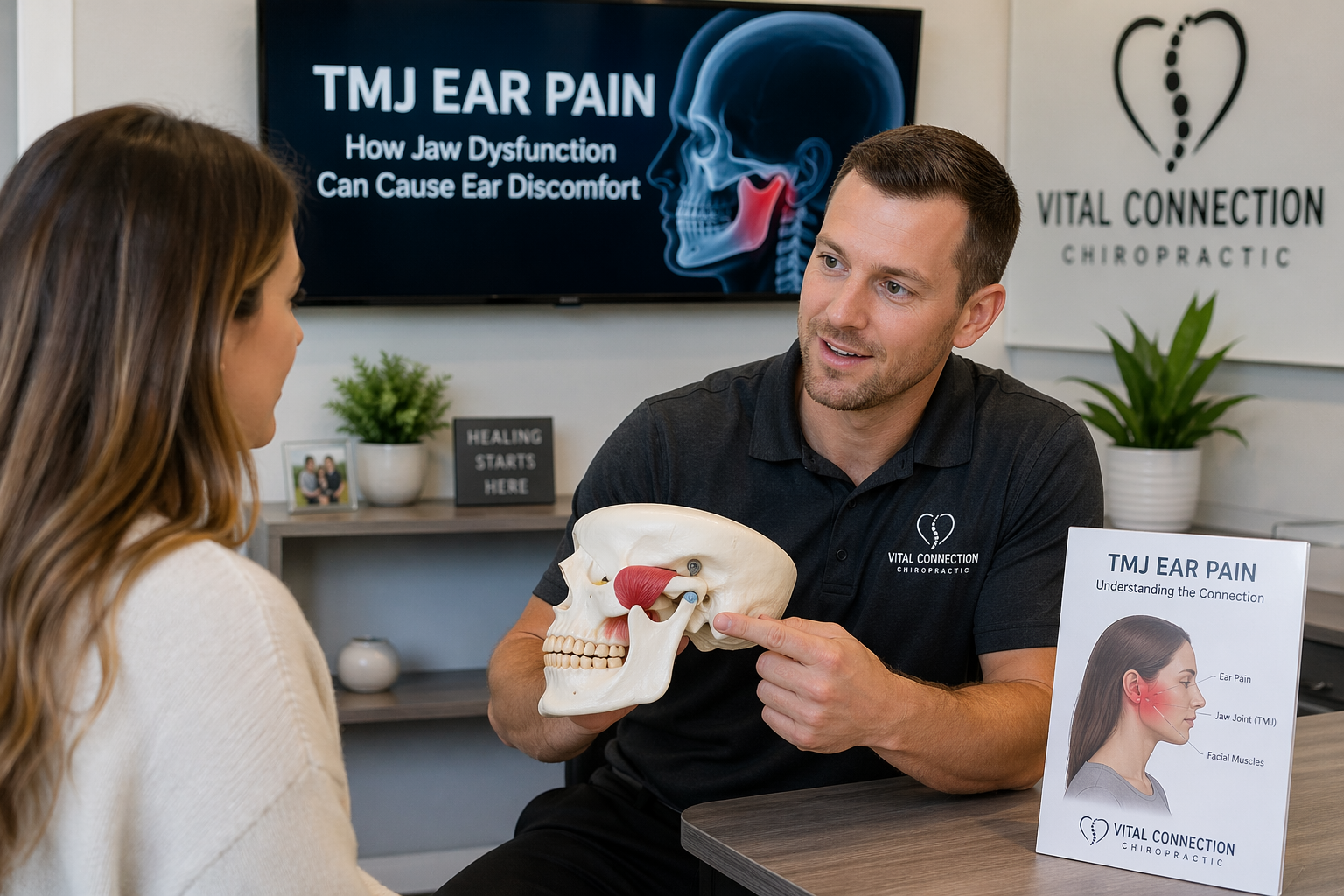 The TMJ sits just in front of the ear. When the joint or the chewing muscles become irritated, inflamed, overworked, or restricted, the pain can feel like it is coming from the ear. This is one reason people with TMJ ear pain often say, “My ear hurts, but nothing seems wrong with it.”